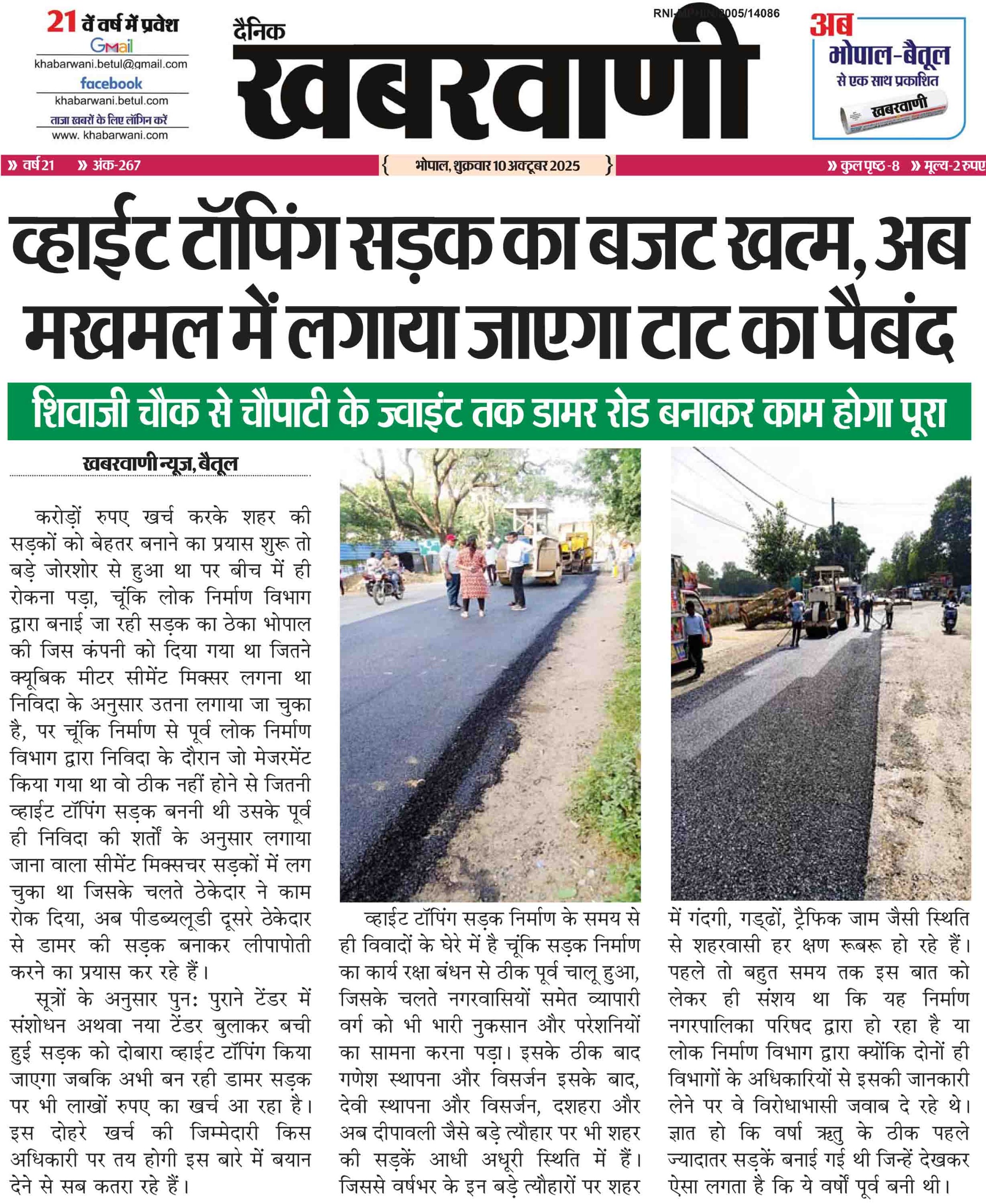व्हाईट टॉपिंग सडक़ का बजट खत्म, अब मखमल में लगाया जाएगा टाट का पैबंद