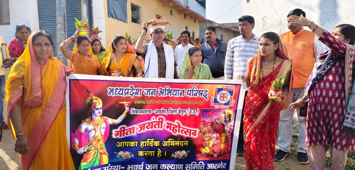 गीता जयंती के अवसर पर कलश यात्रा निकालकर मातृशक्तियो ने लिया आदर्श ग्राम बनाने का संकल्प