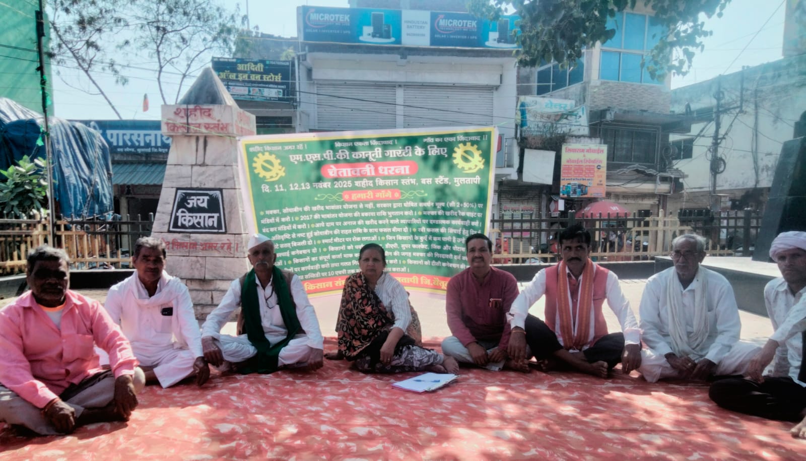 समर्थन मूल्य पर उपज की खरीदी को लेकर किसान संघर्ष समिति ने दिया धरना
