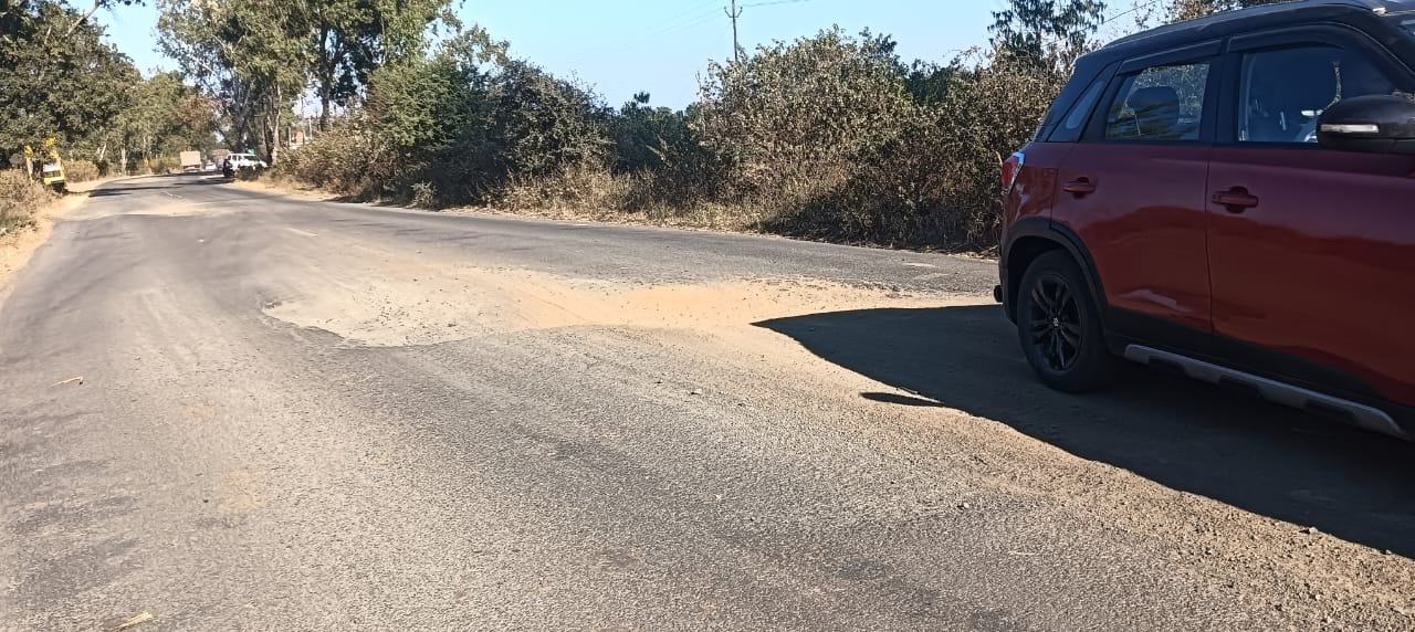 नेशनल हाइवे पहुंच पंखा सड़क जर्जर ,रोजाना दुर्घटनाए ,वाहनो के फुट रहे टायर