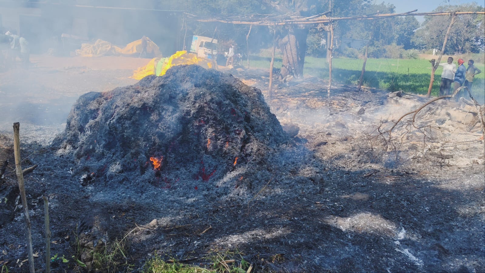चार एकड़ मक्का के ढेर मे लगी आग, 2 लाख का नुकसान