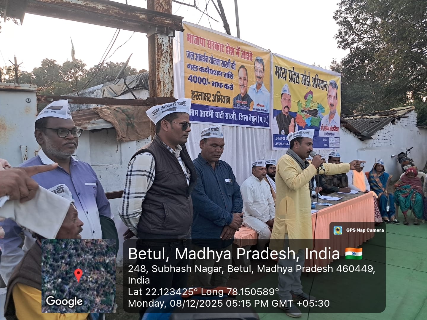 आम आदमी पार्टी सारनी का मध्यप्रदेश जोड़ो अभियान के तहत जल आवर्धन योजना नल कनेक्शन राशि माफ़ करो का सातवां जन संवाद एवं हस्ताक्षर अभियान वार्ड 22 में संपन्न।
