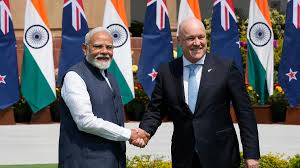 भारत और न्यूजीलैंड के बीच सोमवार को फ्री ट्रेड एग्रीमेंट (FTA) पर मुहर लग गई। इस ऐतिहासिक समझौते की घोषणा प्रधानमंत्री नरेंद्र मोदी और न्यूजीलैंड के प्रधानमंत्री क्रिस्टोफर लक्सन की मुलाकात के बाद की गई। यह डील दोनों देशों के आर्थिक रिश्तों को नई ऊंचाई देने वाली मानी जा रही है। वाणिज्य एवं उद्योग मंत्री पीयूष गोयल ने इसे भारत के लिए बड़ी कूटनीतिक और आर्थिक जीत बताया है।