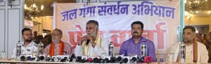 उन्होंने जल गंगा संवर्धन अभियान के तीसरे वर्ष की जानकारी देते हुए बताया कि पिछले वर्ष देश के यशस्वी प्रधानमंत्री नरेन्द्र मोदी जी के कुशल मार्गदर्शन व प्रदेश के मुखिया मोहन यादव के नेतृत्व में प्रदेश के ग्रामीण विकास मंत्रालय द्वारा प्रदेश भर में जल गंगा संवर्धन जन अभियान बन गया है। जिसमे अनेको जल स्रोतों को जीवंत कर तालाबों का गहरीकरण नदी के उद्गम स्थलो का पुनर्जीवन के साथ ही नदी पर बोरी बंधान के माध्यम से पानी रोक कर जल के स्तर को बढाया गया अभियान की सफलता को देखते हुए प्रदेश सरकार ने इस वर्ष भी पुनः जारी रखा है।इस वर्ष सरकार की मंशा है कि जो कार्य पिछले वर्ष बरसात आने के कारण छूट गए थे उन्हे पूरा किया जाए साथ ही तालाबों का गहरीकरण इस प्रकार से किया जाए कि उसमें वर्ष भर पानी की निरंतरता बनी रहे जिससे गर्मी के मौसम में भी पानी की कमी न हो पाए। जल गंगा संवर्धन अभियान का मूल उद्देश्य ही नदियो को बारह मासी बनाना है यह कार्य बिना जनता की सक्रिय सहभागिता के संभव नही हो सकता अतः उन्होने जिले के सभी वासियों से अनुरोध करते हुए निवेदन किया कि कल से चैत्र नवरात्र से प्रारंभ होने वाले जल गंगा संवर्धन अभियान में अपने आस पास के जल स्त्रोतो पर जाकर शासन प्रशासन से कंधे से कंधा मिलाकर अभियान में अपनी सहभागिता प्रदान करे।