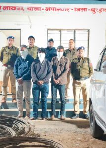 थाना नेपानगर पुलिस चौकी नावरा द्वारा बिजली के एल्यूमिनियम तार चोरी के शातिर चोर गिरोह को पकड़ने मे सफलता।
