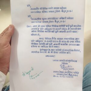 नगरपालिका अध्यक्ष व सीएमओ को सौंपा गया पत्र