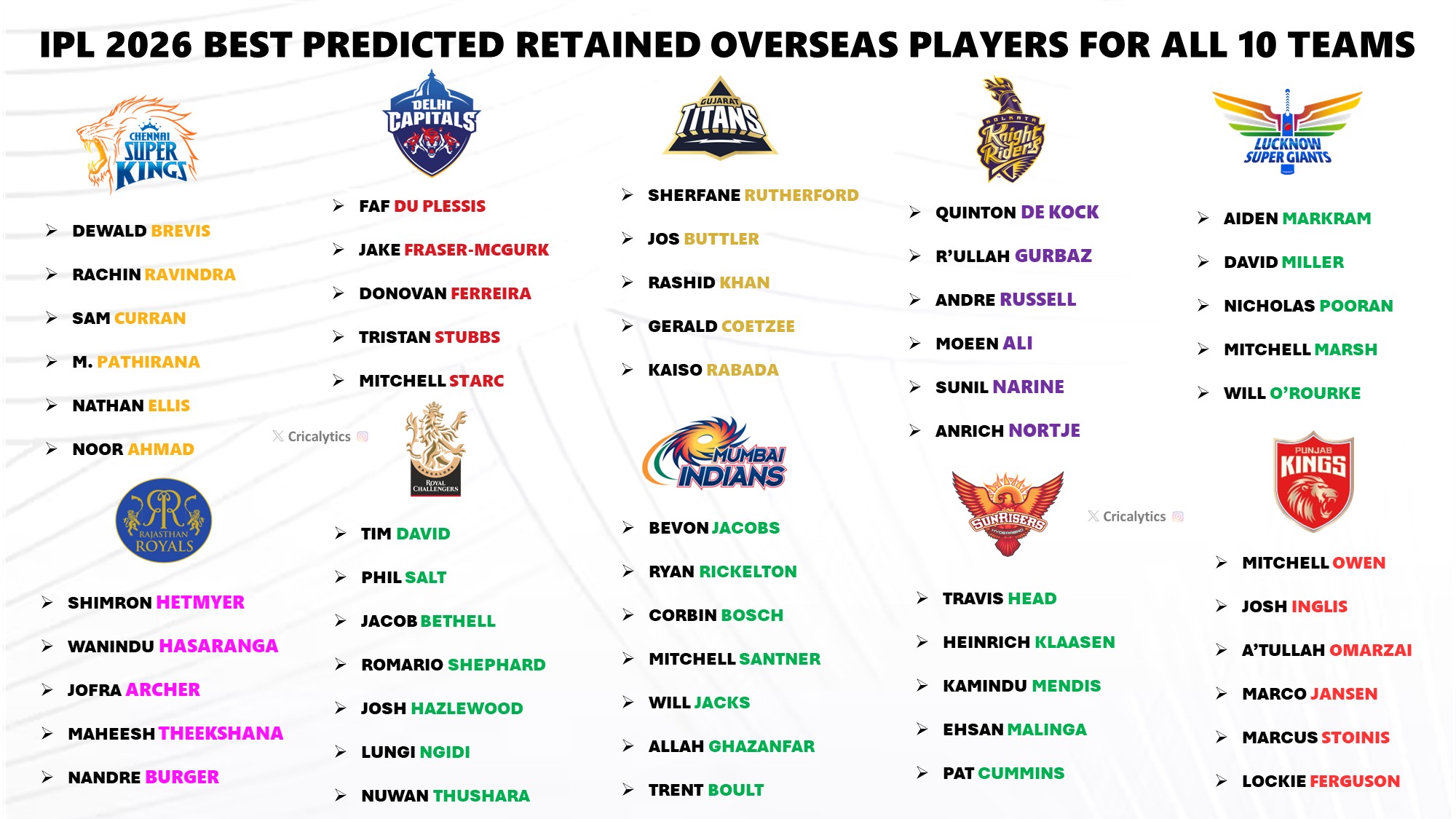 IPL 2026: सभी 10 टीमों की रिटेंशन लिस्ट हुई जारी, देखें किस टीम ने किन खिलाड़ियों पर जताया भरोसा
