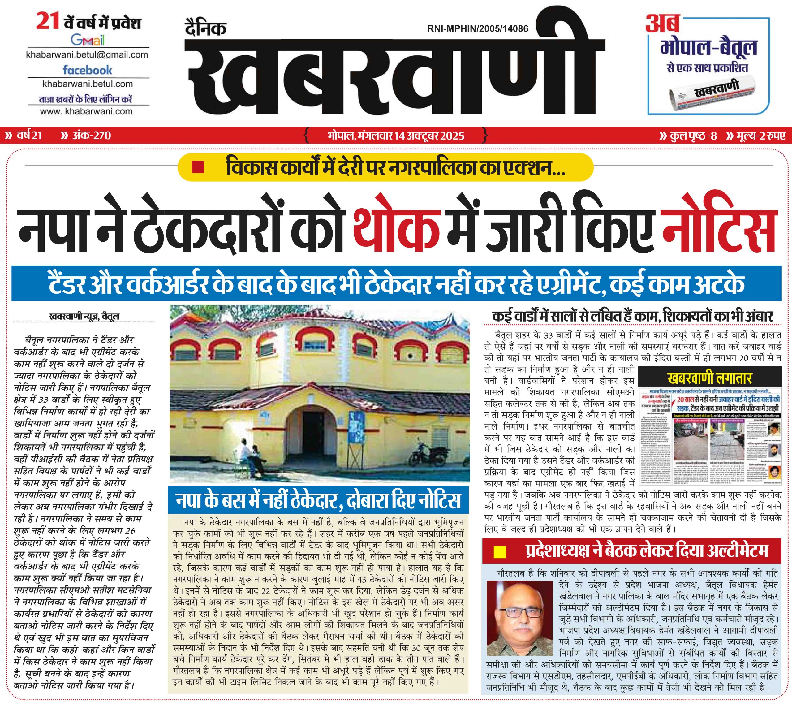 आज खबरवाणी ई-पेपर –दैनिक खबरवाणी 14 अक्टूबर 2025 आज की खबरें यहां पढ़ें
