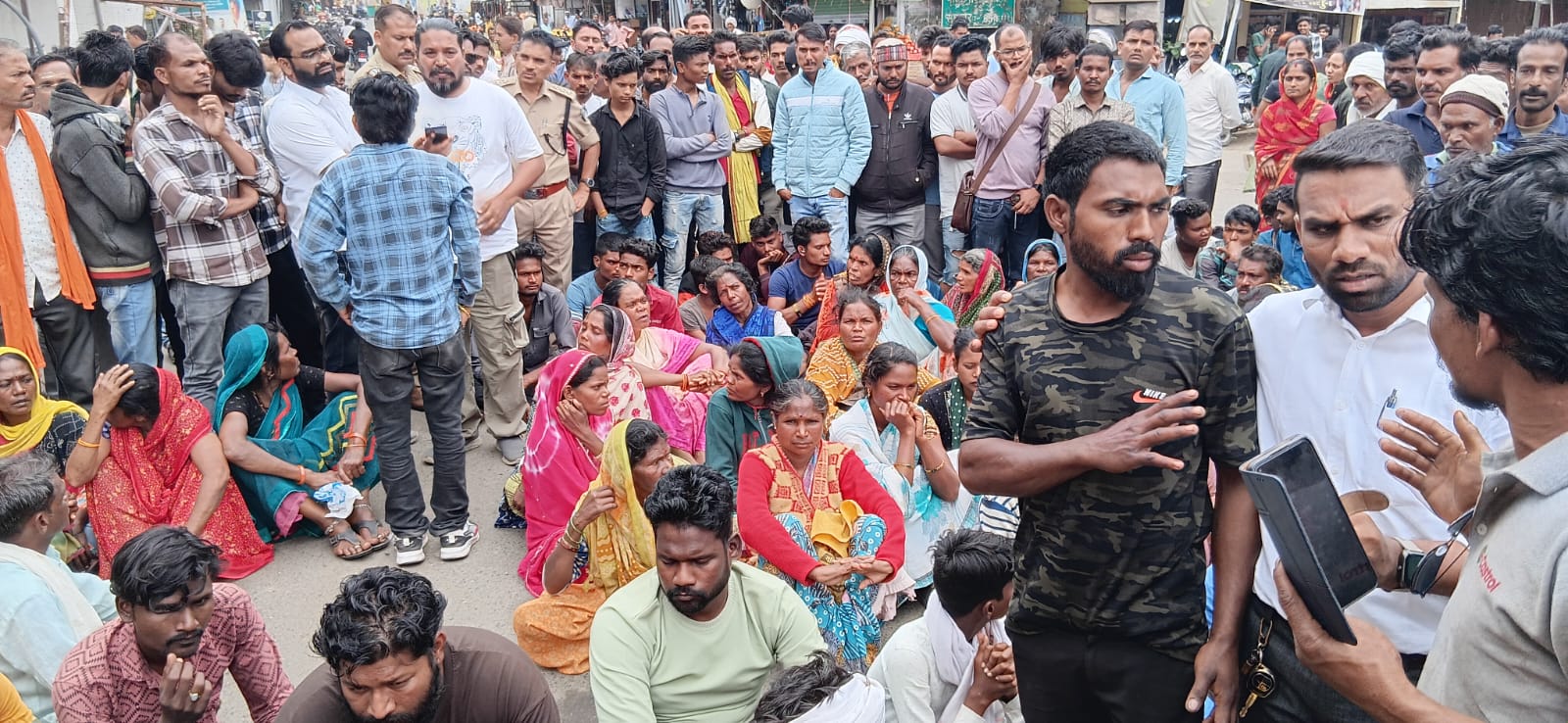 युवक की हत्या के बाद शव रखकर परिजनों ने कामधेनु चौक पर किया चक्कजाम