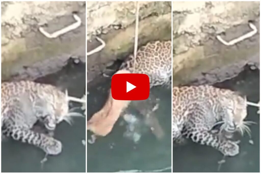 Tendue Aur Billi Ka Video – तेंदुआ कर रहा था बिल्ली का शिकार, तभी दोनों गिरे कुए में