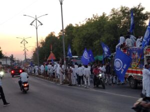 शाम करीब 6 बजे बागडोना स्वागत गेट से भव्य वाहन रैली निकाली गई, जिसमें बड़ी संख्या में महिलाएं, पुरुष और बच्चे शामिल हुए। सभी “जय भीम” और “हमारा संविधान” के नारों के साथ उत्साहपूर्वक आगे बढ़ते नजर आए। रैली में शामिल लोग साफ-सुथरे वेशभूषा में और सिर पर साफा बांधे हुए थे, जो अनुशासन और एकता का संदेश दे रहे थे। यह रैली बागडोना से शुरू होकर शोभापुर कॉलोनी और पाथाखेड़ा होते में संपन्न हुई।