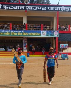सारनी। स्व० विजय कुमार खंडेलवाल जी की स्मृति में आयोजित राज्य स्तरीय टेनिस बॉल क्रिकेट टूर्नामेंट का आज दसवे दिन में चार मैच खेले गए! जिसमें पहला मैच लोकल ग्रुप से सुपर 16 के लिए पहला मैच खेला गया बादलपुर इलेवन व एल आई सी इलेवन बगडोना के बीच खेला गया जिसमें एल आई सी इलेवन बगडोना ने टास जीतकर क्षेत्ररक्षण करने का निर्णय लिया पहले बल्लेबाजी करने उतरी बादलपूर इलेवन ने 10 ओवर में 5 विकेट खोकर 102 रन बनाएं ! 103 रनों के लक्ष्य का पीछा करने उतरी एल आई सी इलेवन बगडोना ने आठवीं ओवर मे एक विकेट खोकर 103 रनों का लक्ष्य प्राप्त किया और यह मैच 9 विकेट से जीत गए इस मैच के मैन ऑफ द मैच हर्ष जिन्होंने 30 गेंद पर 49 रनों की पारी खेली और मैन ऑफ द मैच बने ! आज के दिन का दूसरा मैच सम्राट क्लब बैतूल व वैष्णवी क्लब बैतूल के बीच खेला गया जिसमें वैष्णवी क्लब बैतूल ने टॉस जीत कर पहले बल्लेबाजी करते हुए 10 ओवर में 9 विकेट खोकर 117 रन बनाएं ! 118 रनों के लक्ष्य का पिछा करने उतरी सम्राट बैतूल ने नौ ओवर मे चार विकेट खोकर 119 रनों का लक्ष्य प्राप्त किया और यह मैच 6 विकेट से जीत लिया इस मैच के मैन ऑफ द मैच राहुल जिन्होंने 19 गेंदों पर 58 रनों की पारी खेली और मैन ऑफ़ द मैच बने ! आज के दिन का तीसरा मैच सुपर 4 के लिये मर्चेंट बैतूल व ड्रीम इलेवन सारणी के बीच खेला गया मर्चेंट बैतूल ने टॉस जीतकर क्षेत्ररक्षण करने का निर्णय लिया पहले बल्लेबाजी करते हुए ड्रीम इलेवन सारणी ने 10 ओवर में 8 विकेट खोकर 128 रन बनाए 129 रनों के लक्ष्य का पीछा करने उतरी मर्चेंट बैतूल ने 10 ओवर मे 7 विकेट खोकर महज 77 रन ही बना पाई और यह मैच 51 रनों से हार गई इस मैच के मैन ऑफ द मैच शिवम जिन्होंने 21 गेंद पर 51 रनों की शानदार पारी खेली और मैन ऑफ द मैच बने ! आज के दिन का चौथा मैच एल आई सी इलेवन बगडोना व सम्राट क्लब बैतूल के बीच खेला गया के एल आई सी इलेवन बगडोना में टॉस जीतकर क्षेत्ररक्षण करने का निर्णय लिया पहले बल्लेबाजी करते हुए सम्राट बैतूल ने 8 ओवर में 9 विकेट खोकर 70 रन बनाएं 71 रनों के लक्ष्य का पीछा करने उतरी एल आई सी इलेवन बगडोना ने आठ ओवर मे 9 विकेट खोकर महज 56 रन ही बना पाई और यह मैच 15 रनों से हार गई इस मैच के मैन ऑफ द मैच निरंजन जिन्होंने अपने दो ओवर में 8 रन देकर पाच विकेट हासिल किया और मैन ऑफ द मैच बने !