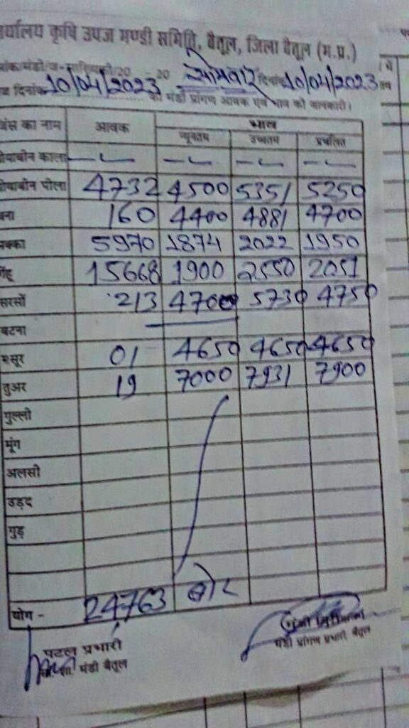 Today Mandi Bhav – बैतूल कृषि उपज मंडी के आज (10 अप्रैल 23) दिन सोमवार के भाव