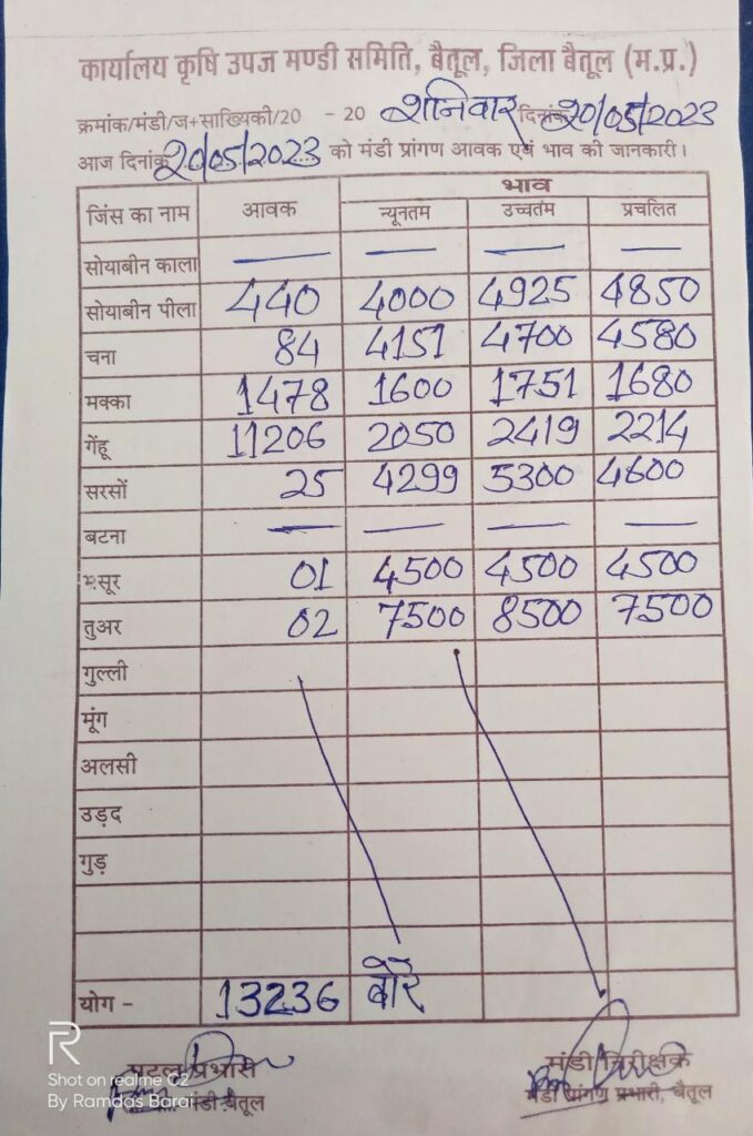 Today Mandi Bhav – बैतूल कृषि उपज मंडी के आज (20 मई 23) दिन शनिवार के भाव