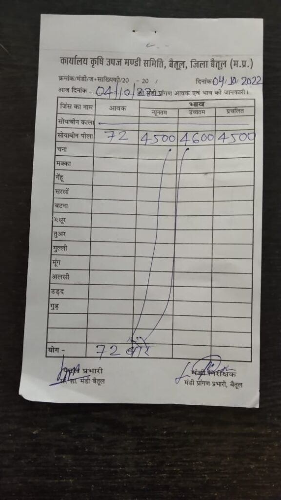 Today Mandi Bhav – बैतूल कृषि उपज मंडी के आज ( 4 अक्टूबर 22) दिन मंगलवार के भाव
