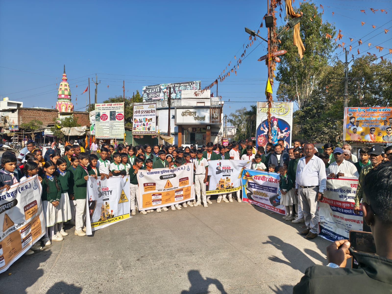 🔹 पुलिस अधीक्षक बैतूल श्री वीरेंद्र जैन के निर्देशानुसार सड़क सुरक्षा सप्ताह के अंतर्गत यातायात जागरूकता एवं रोड सेफ्टी अभियान के तहत यातायात पुलिस बैतूल, ट्रैफिक वार्डन एवं थाना आमला पुलिस द्वारा व्यापारी संघ आमला, आमला के जनप्रतिनिधिगण तथा नगरपालिका अध्यक्ष एवं सदस्यों के सहयोग से जनपद चौक आमला एवं पुराने थाने के सामने सड़क दुर्घटनाओं से बचाव एवं जन-जागरूकता हेतु नुक्कड़ नाटक का आयोजन किया गया।