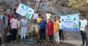 जल गंगा अभियान के तहत मठारदेव मंदिर परिसर से सटी सार्वजनिक जामुन झिरिया की श्रमदान से की सफाई