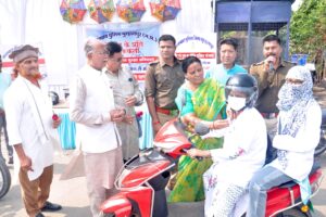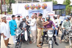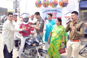 यातायात सप्ताह के अंतर्गत जनजाग्रति संस्था बुरहानपुर द्वारा राहगीरों को किया निशुल्क हेलमेट वितरण l