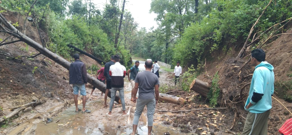 गुरूवार रात से तेज बारिश के साथ सुबह का आगाज हुआ। तेज बारिश होने के कारण पानी नदी नाले उफान पर बारिश बंद होने के बाद तेज आंधी चलने लगी। जिससे रोडवेज में गिरे पेड़ पेड़ बिजली के तारों पर जा गिरा। जिससे बिजली का खंभा क्षतिग्रस्त हो गया और पेड़ सड़क पर लेट गया। इससे सड़क बाधित हो गया। करीब एक घंटे बाद सड़क सुचारू ढंग से चालू हो पाया। इधर कोई कच्चे मकान की दिवाले गिर गई है।