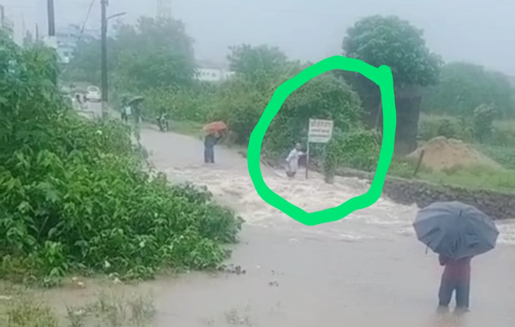 बताया जाता है कि सुभाष वार्ड निवासी जीवन पवार शुक्रवार की सुबह नाले की पुलिया पर से पानी बहने के बाद भी नाला पार कर रहा था,इस दौरान उसका संतुलन बिगड़ गया और वह नाले में बह गया। जानकारी मिलने के बाद से परिजनों द्वारा जीवन की तलाश की जा रही है लेकिन उसका कोई पता नहीं चल पाया है। बताया जाता है कि जीवन पवार नगर में हम्माली का काम करता था। जिसे उपस्थित लोगों ने मना भी किया लेकिन वह नही माना। घटना का लोगो ने वीडियो भी बनाया है,जो सोशल मिडीया पर जमकर वायरल हो रहा है।