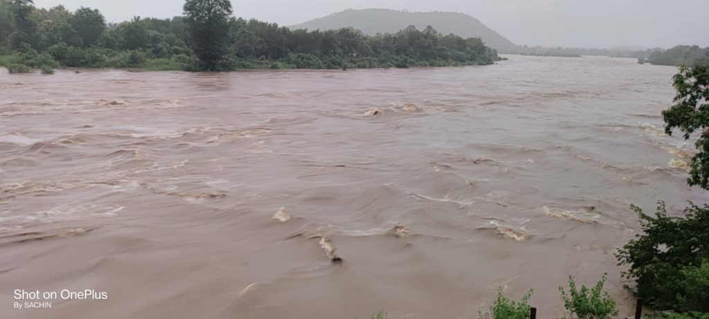 पारसडोह जलाशय के 3 गेट डेढ़ मीटर तक खोले, लगातार बारिश से उफान पर ताप्ती।